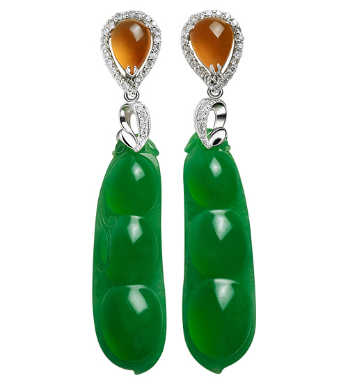 玉石耳环-豆荚款